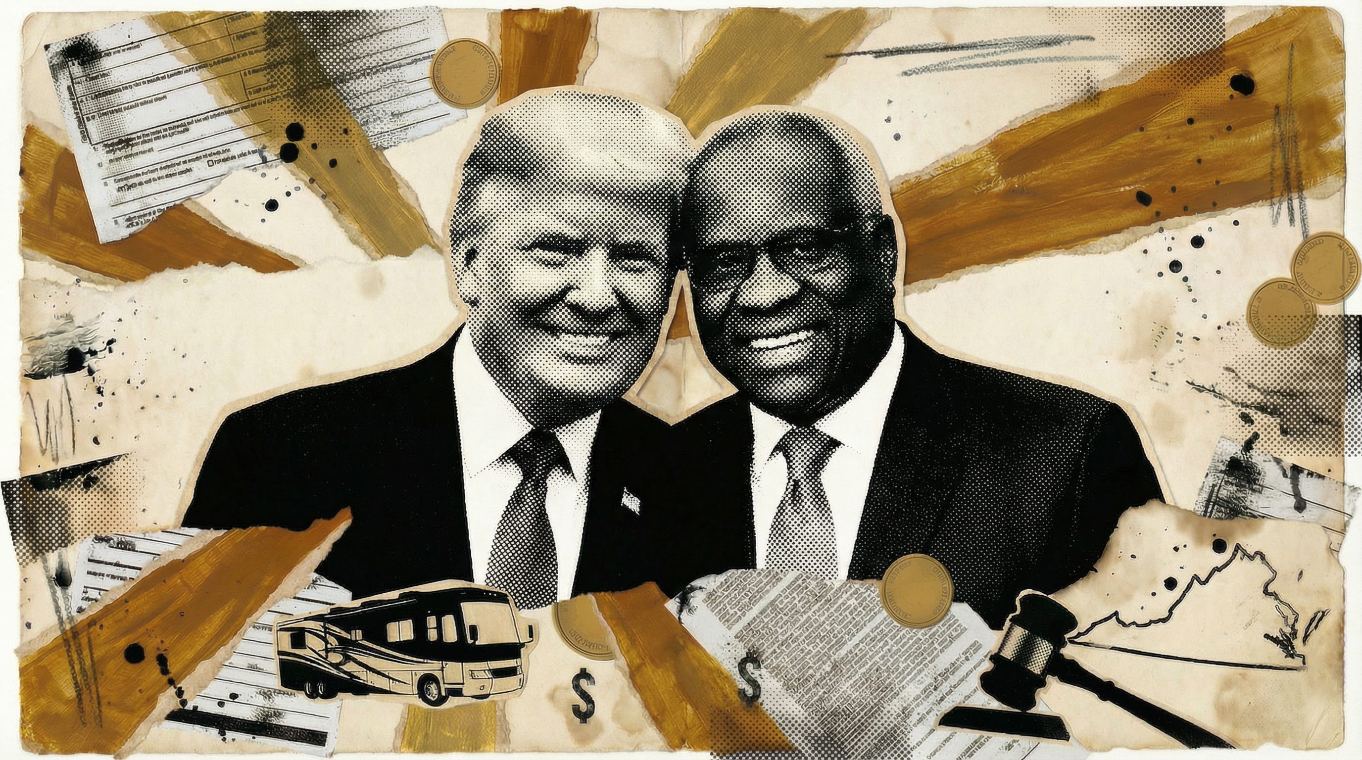 Thomas’s address satisfies the first condition. He lives in Fairfax Station, Virginia, and he files Virginia returns. The second depends on whether he received taxable income he failed to report. Between 2004 and 2023, he accepted confirmed and likely gifts worth an estimated $4.2 million from a small group of billionaires, each of whom appears to have entered his life only after he joined the Supreme Court in 1991. Fix the Court, a judicial reform group, documented the total.³ Harlan Crow, a Dallas real estate magnate and Republican megadonor, provided the bulk: superyacht cruises through Indonesia, private jet flights on his Bombardier Global 5000, annual stays at his private Adirondack resort, trips to the Bohemian Grove in California. ProPublica reported that a single trip to Indonesia in 2019 would have cost more than half a million dollars to replicate commercially.⁴ David Sokol, the former Berkshire Hathaway executive, provided luxury suite access at football games. H. Wayne Huizenga, the Blockbuster and Waste Management magnate, sent his personal Boeing 737 to pick Thomas up and fly him to South Florida. ProPublica documented all of this in its reporting on Thomas’s other billionaire benefactors.⁵ Paul “Tony” Novelly, an oil billionaire, provided additional undisclosed travel.