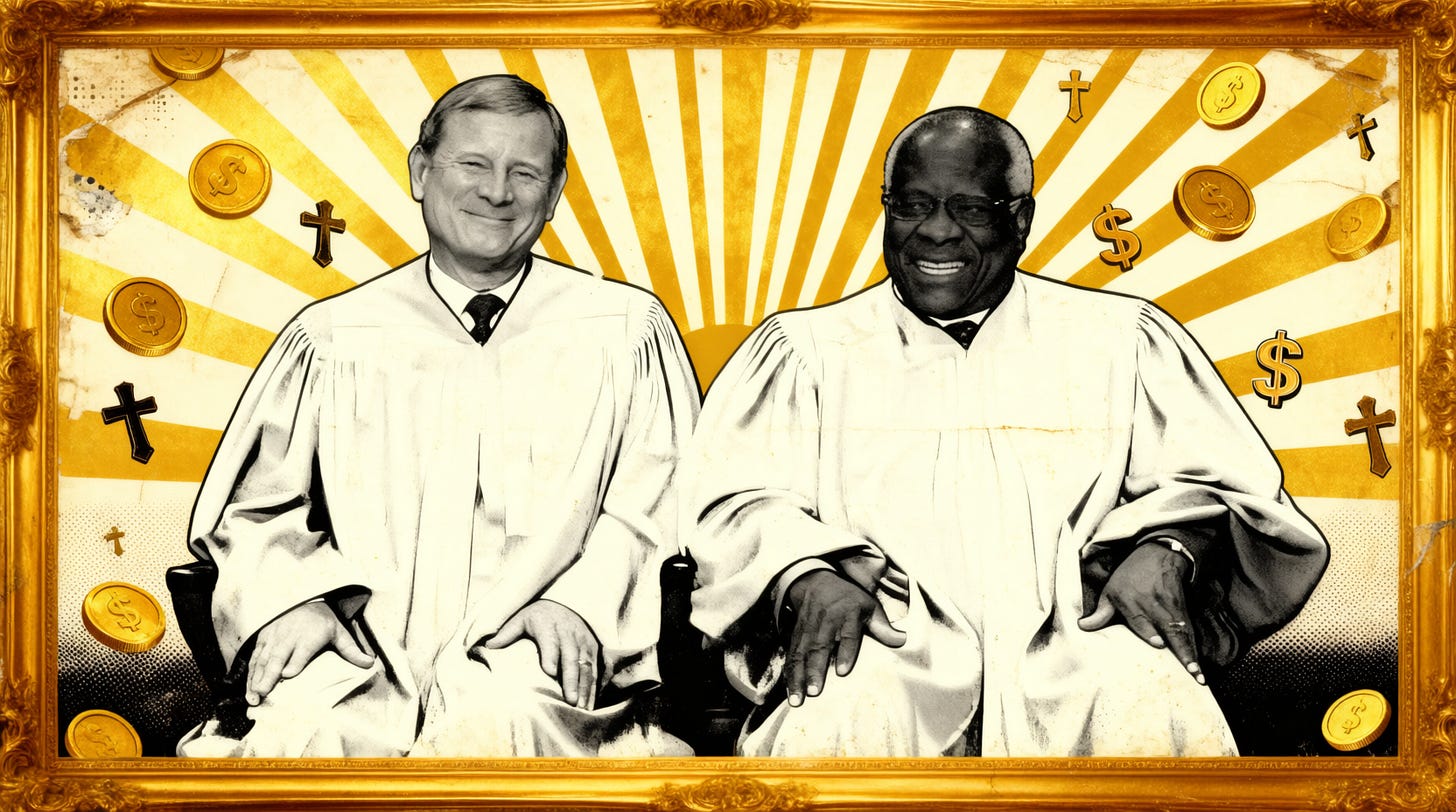 The prosperity gospel preacher reads the Bible, knows what Jesus said about wealth, and lies about it because there’s more money in the lie. John Roberts reads the Constitution, knows what it says about public officials enriching themselves in office, and lies about it for the same reason. Then his Court makes the lying legal.